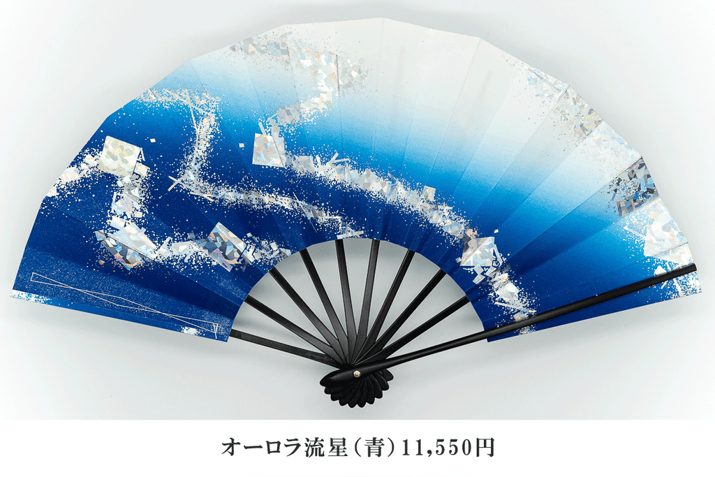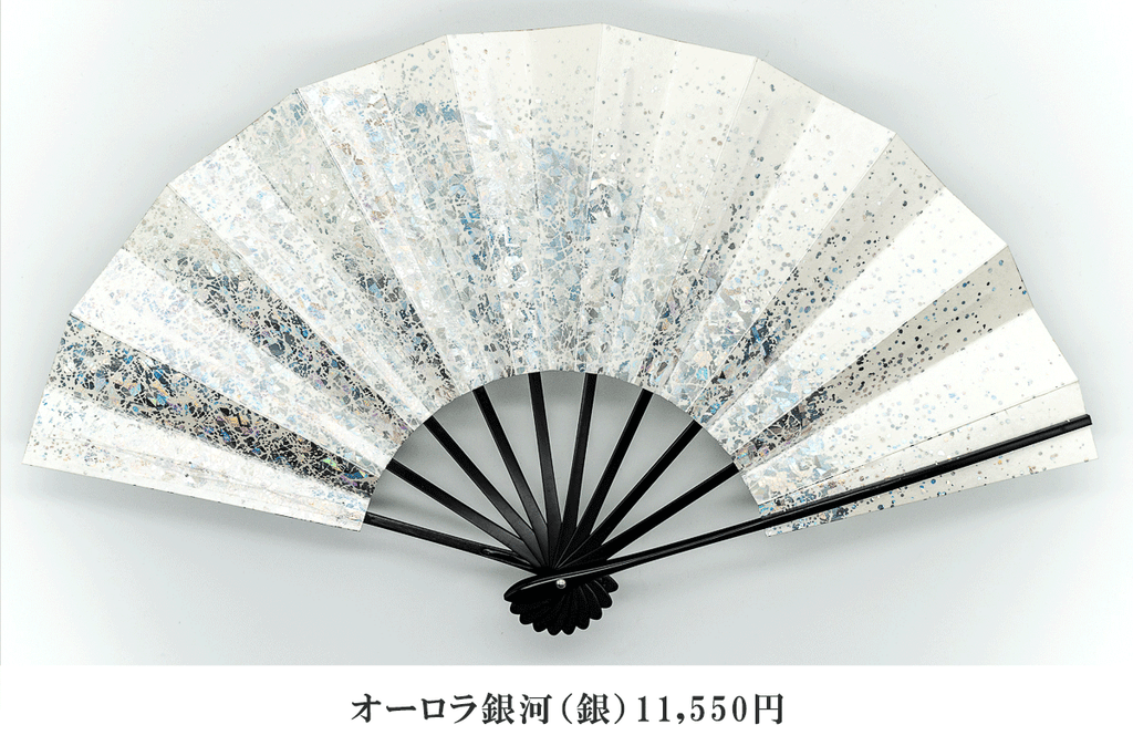 扇子:6種類からお選びください華やかで見栄えする箔仕立ての扇子を選りすぐりました。上質な金箔、オーロラ箔が品格ある輝きを放つ万葉の扇子はプロの舞踊家にも舞台でご使用頂いており、写真映えも完璧です。ご友人同士、グループ皆さまでお揃いやお色違いでお持ち頂くのも人気です。