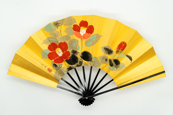 紅白梅 手描 蝙蝠扇