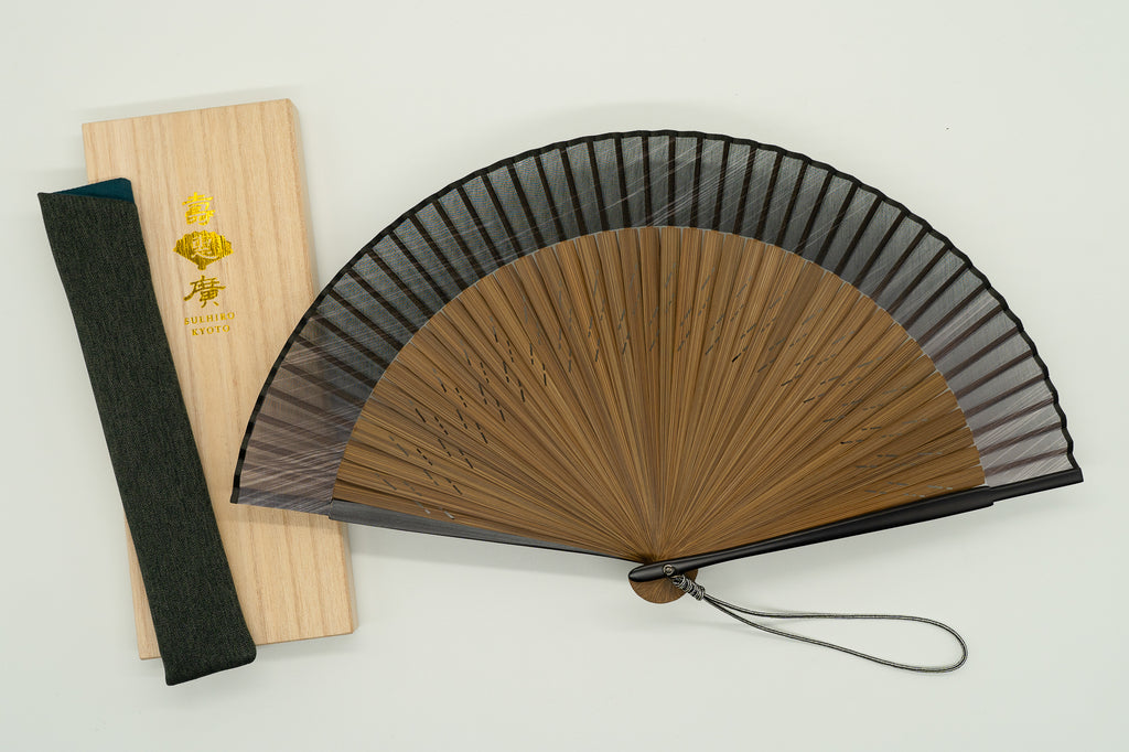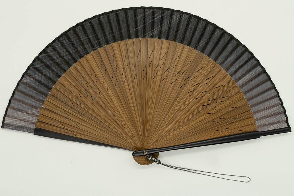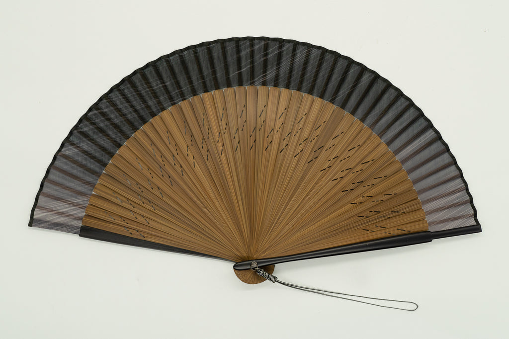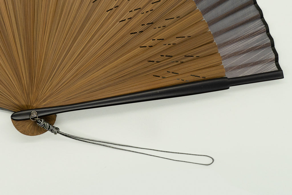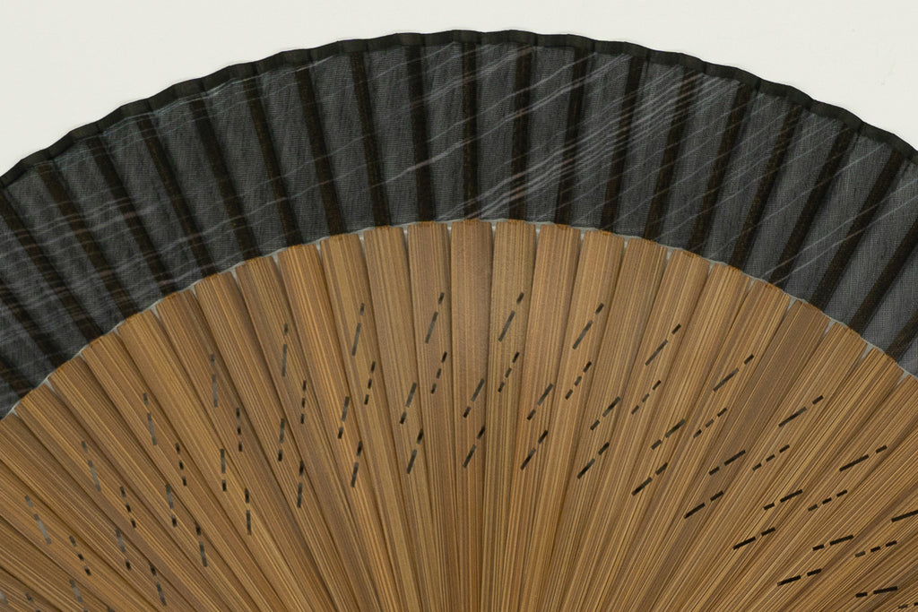 This short-style fan, characterized by its long ribs and short fan face, flexes as you fan, creating a gentle breeze. The diagonal design reflecting the signs of rain and the beautiful sheerness of the fabric create an atmosphere of tranquility, bringing peace to your mind. It is also an ideal gift.