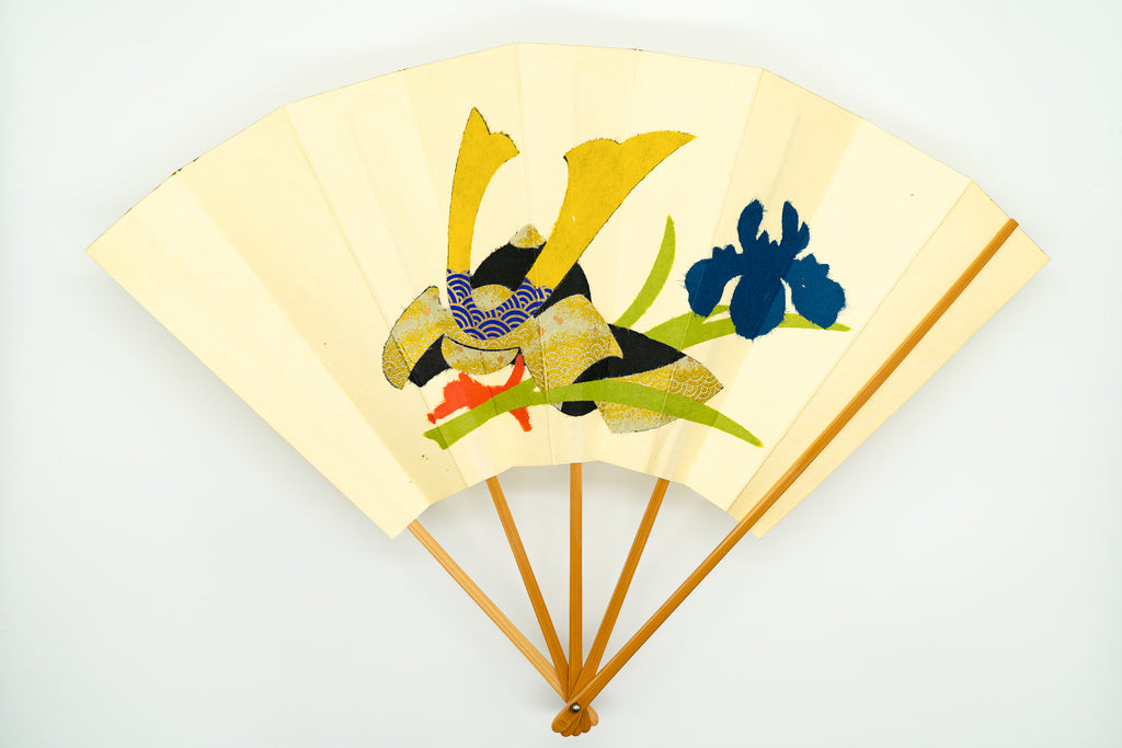 【一点もの】蝙蝙蝠扇は平安時代に生まれ、古くは紙扇・紙張り扇の総称でした。扇を開いた形がコウモリの羽に似ているからとも言われています。フォルムが美しく、インテリアに取入れやすいちょうど良いサイズでおしゃれに飾っていただけます。こちらは鳥の子地の扇面に和紙のちぎり絵で兜が描かれています。ちぎり絵が立体的で柔らかな雰囲気を醸し出しています。