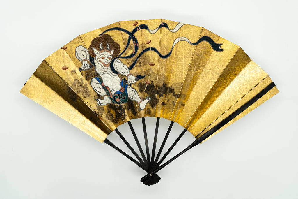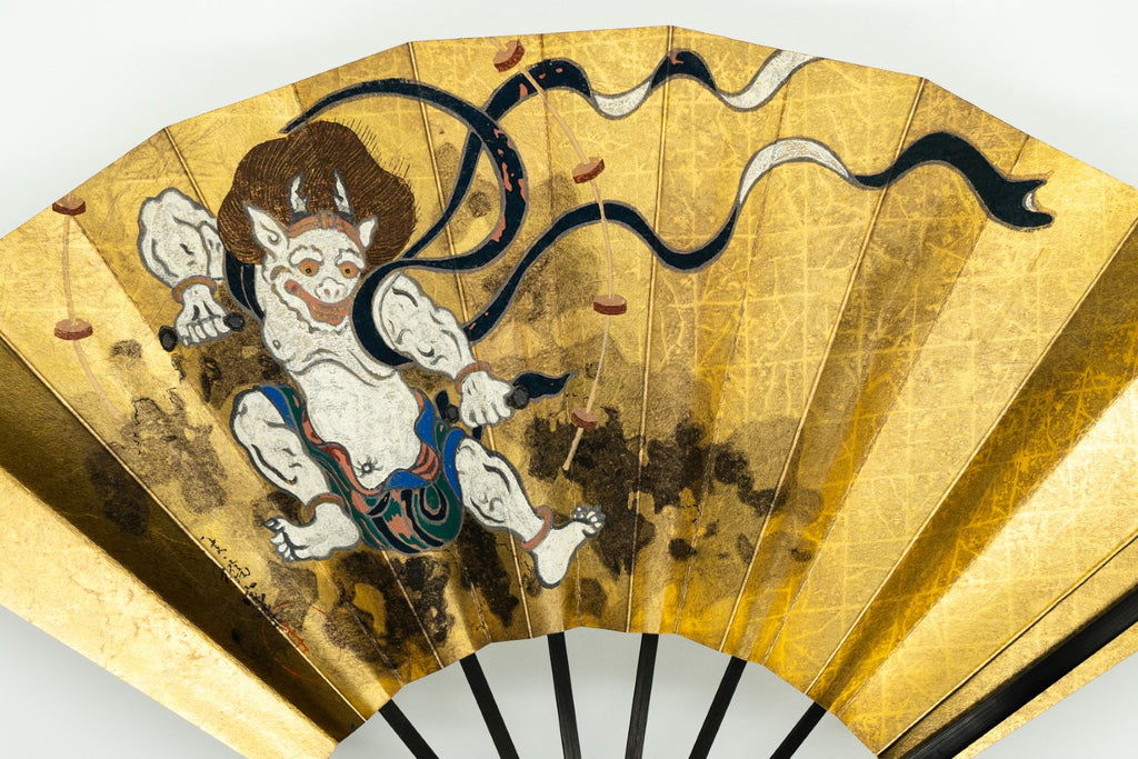 金地の扇面に雷神が描かれています。飾り場所を選ばず通年ご利用いただけます。