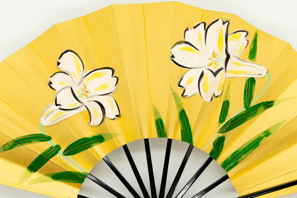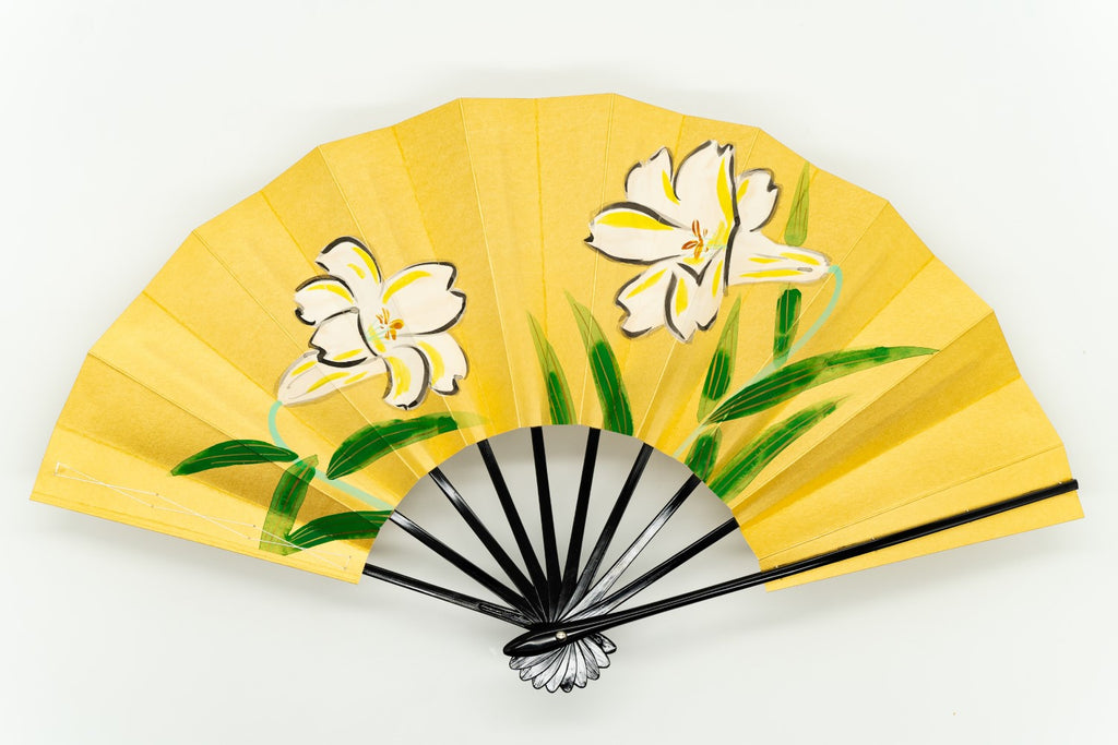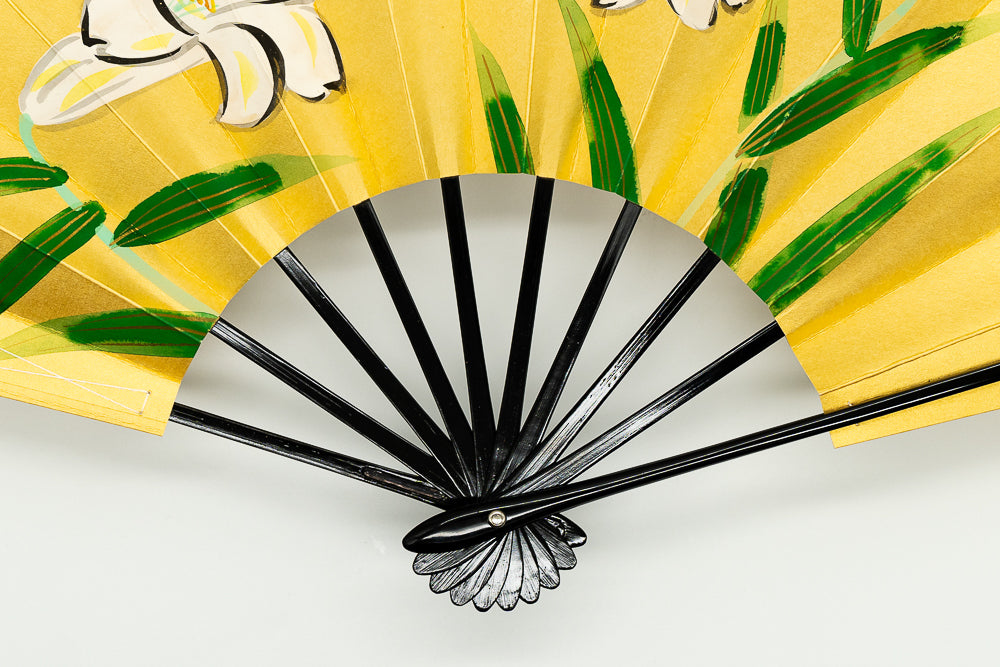 色合い:金,白イメージ:華やかデザイン・柄:百合サイズ(長さ):29cmサイズ(広げた時の横幅):51cm