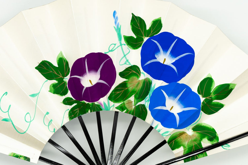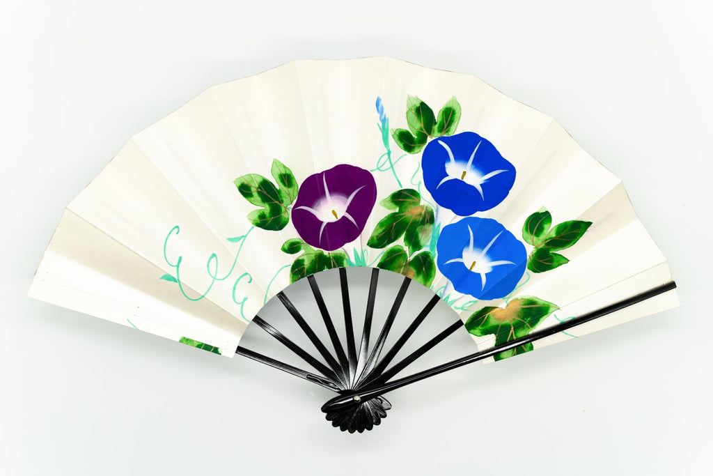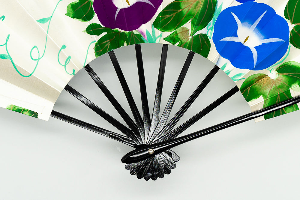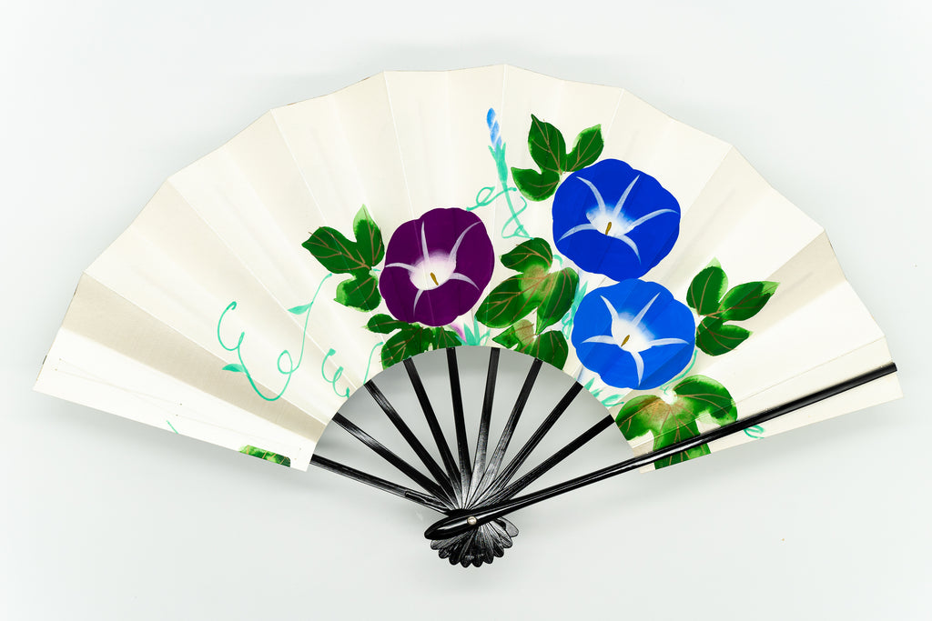 パール地に色鮮やかな朝顔が手描きで描かれています。