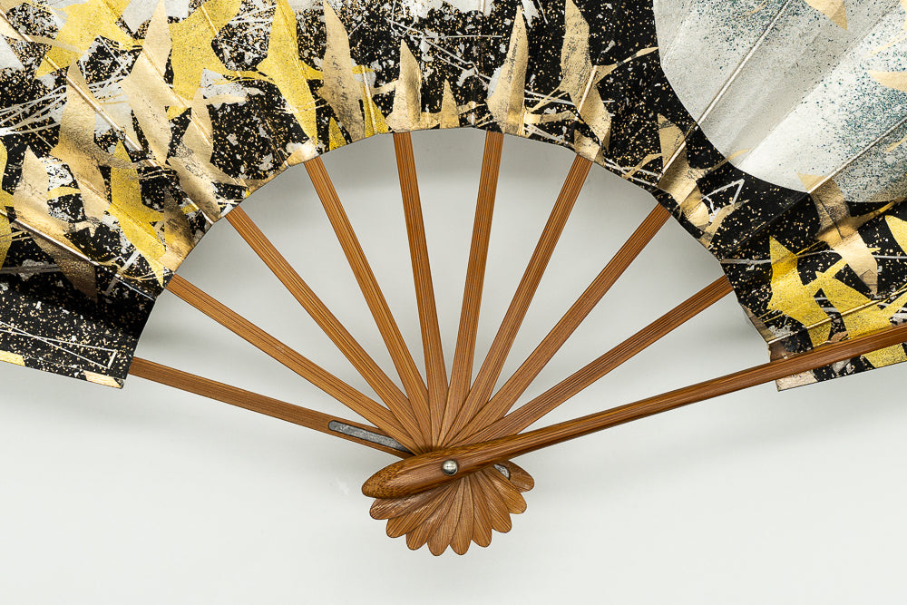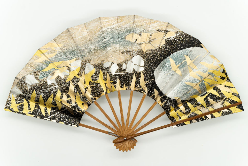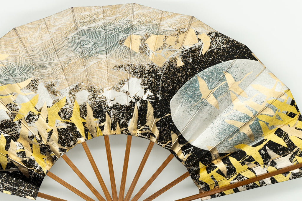 色合い:銀,金,黒イメージ:華やか,古典デザイン・柄:鶴,月サイズ(長さ):30.5cmサイズ(広げた時の横幅):55cm