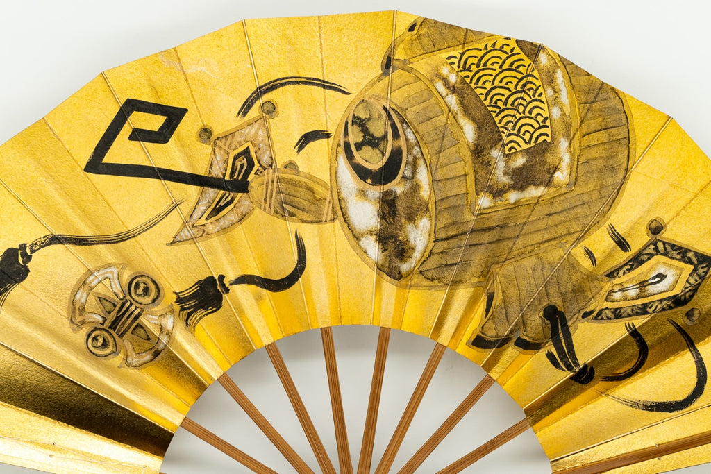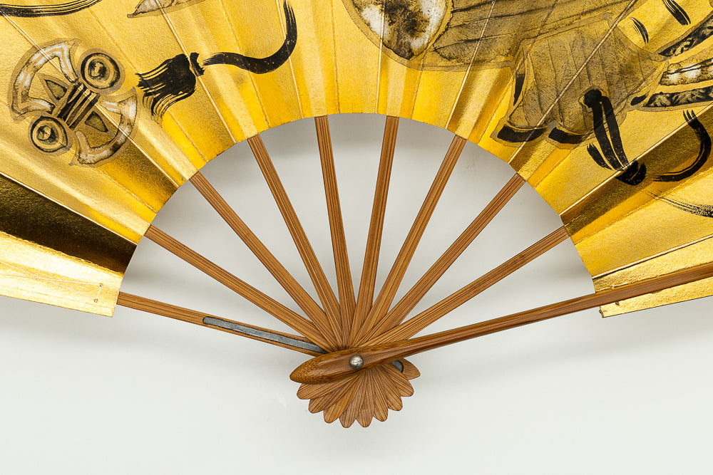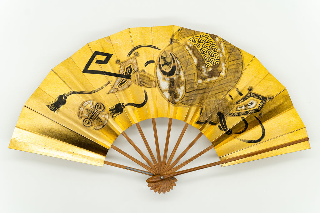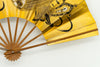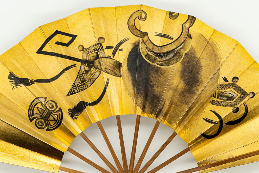 【ビンテージ品】上質な金箔地に墨絵の宝づくしが手描きで丁寧に描かれています。宝尽くしとは、仏教の八宝(8つの宝物)や雑八宝(ざつはっぽう)に由来しています。打出の小槌、隠れ蓑、隠れ傘、丁字、分銅などの様々な宝物のモチーフを並べた宝尽くし文様は大変お目出度い吉祥文様としてとして古くから愛され親しまれており、晴れ着などにも多く使われています。ゴールドが経年変化によりシックなお色味になっており、ビンテージ品らしい趣を楽しんで頂けます。