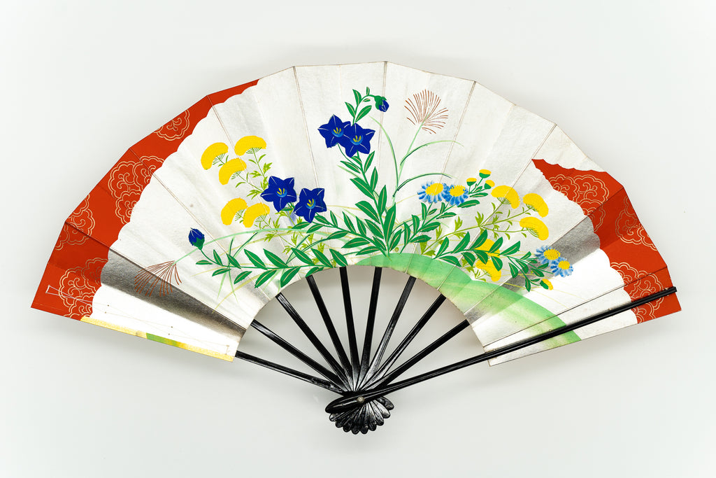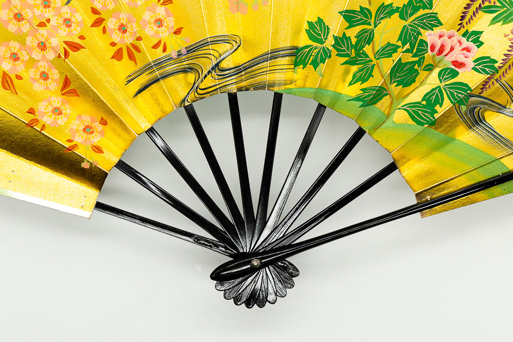 【一点もの・ビンテージ品】上質な金箔地に桜と牡丹を華やかに描き、もう片面は銀箔地に秋草を描いています。表と裏が違うデザインとなっており、雰囲気や季節に合わせて両面でお楽しみいただけます。