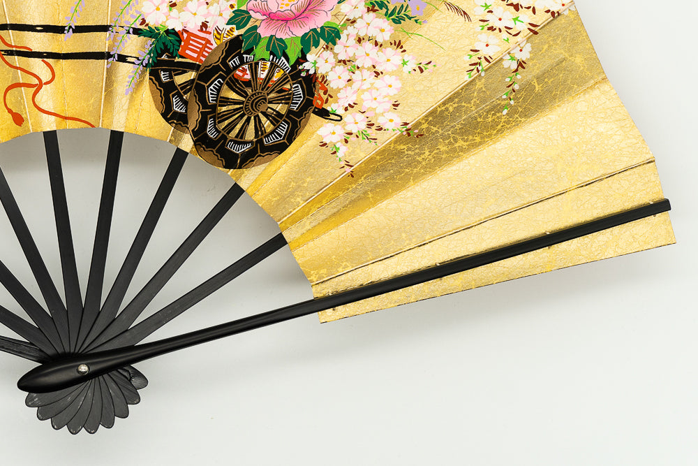 色合い:赤,金,ピンクイメージ:華やか,古典デザイン・柄:花車,花筏サイズ(長さ):29cmサイズ(広げた時の横幅):51cm