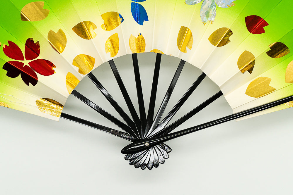 色合い:緑,赤,金イメージ:モダンデザイン・柄:桜サイズ(長さ):29cmサイズ(広げた時の横幅):51cm