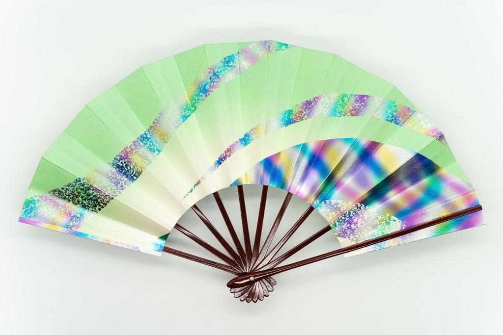 オーロラ箔を使用して虹を表現しました。タメ塗りの骨と調和して上品な雰囲気に仕上がっています。写真映えもする一品です。