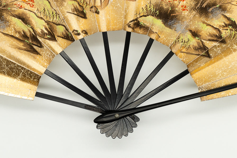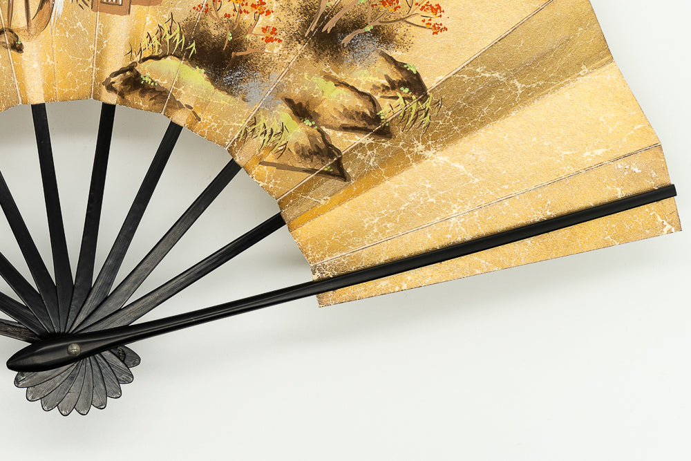 色合い:金,赤,茶イメージ:古典デザイン・柄:風景サイズ(長さ):29cmサイズ(広げた時の横幅):51cm