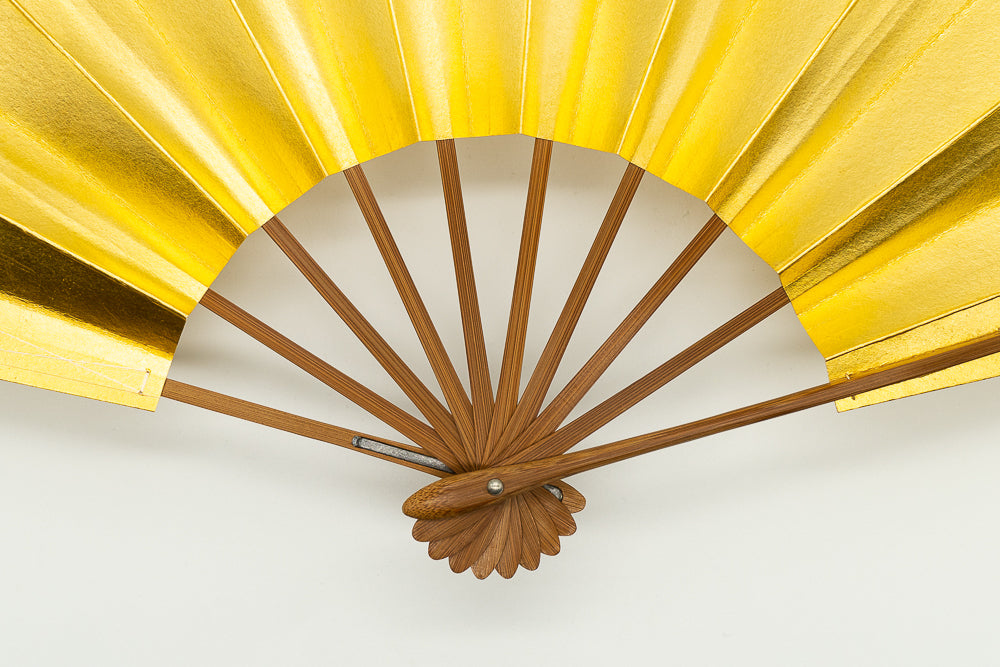 【一点もの・ビンテージ品】地紙に純金(24k)の金箔を使用しており、力強く美しい輝きを放っています。古来より金は豊かさと権力の象徴であり、風水でも「富」「繁栄」「成功」を意味し金運や運気上昇に効果的とも言われています。