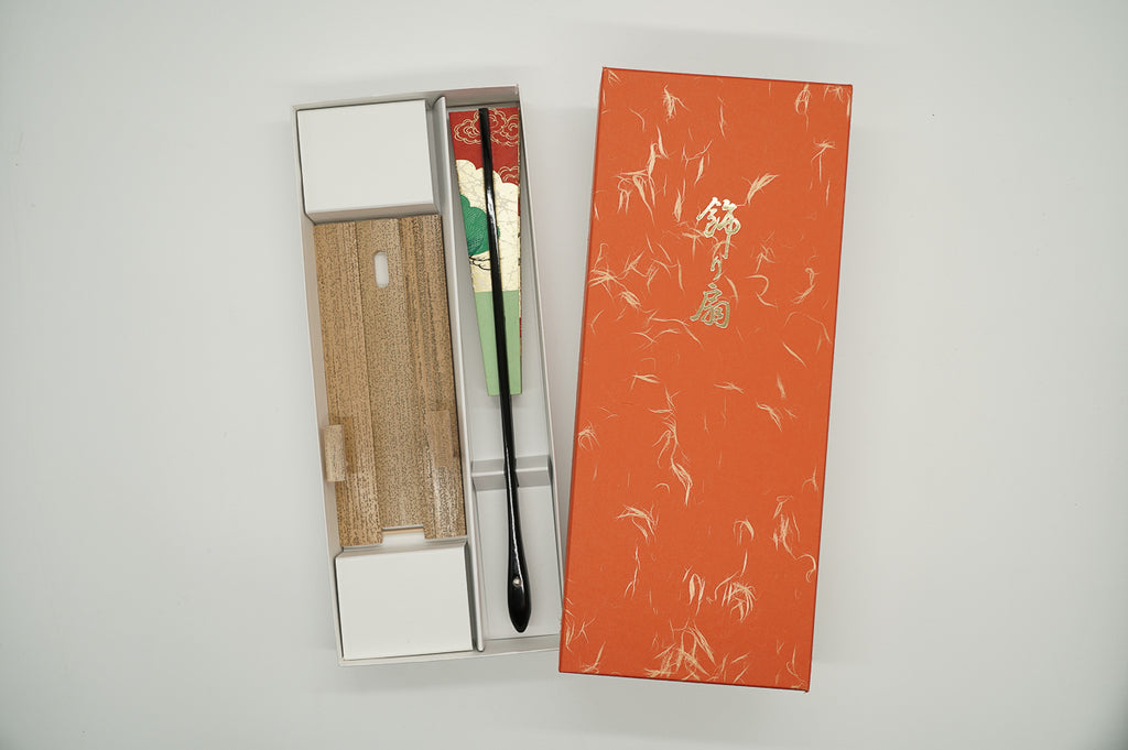 サイズ(長さ):9.5寸(29cm)サイズ(広げた時の横幅):50cm素材(扇骨):竹, 黒塗り素材(扇面):紙商品番号:SF0287※こちらの商品は、扇子立て・化粧箱付きです