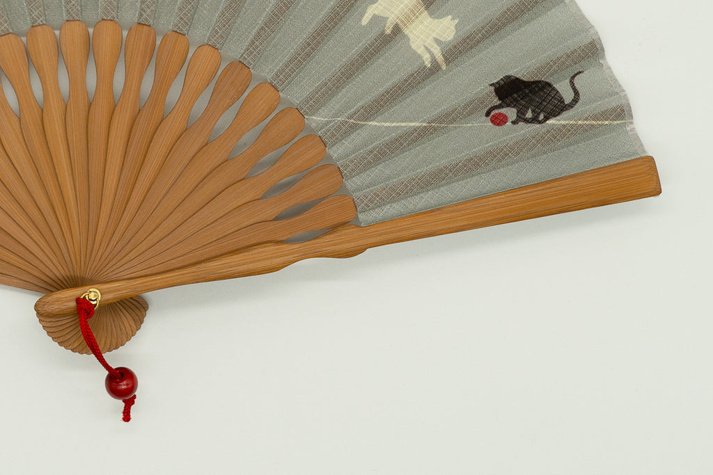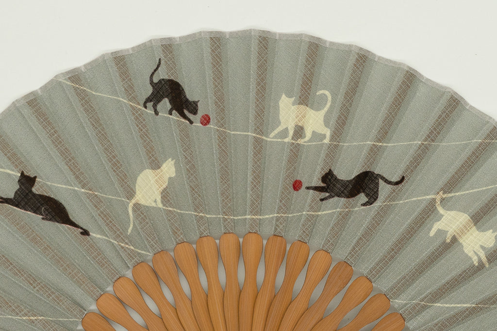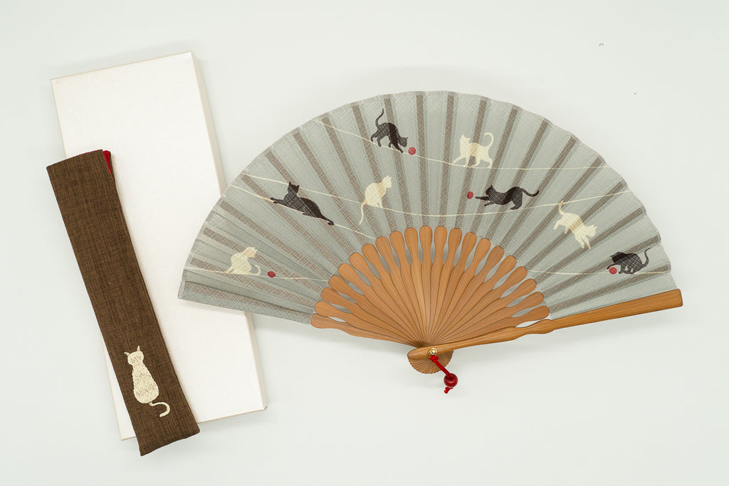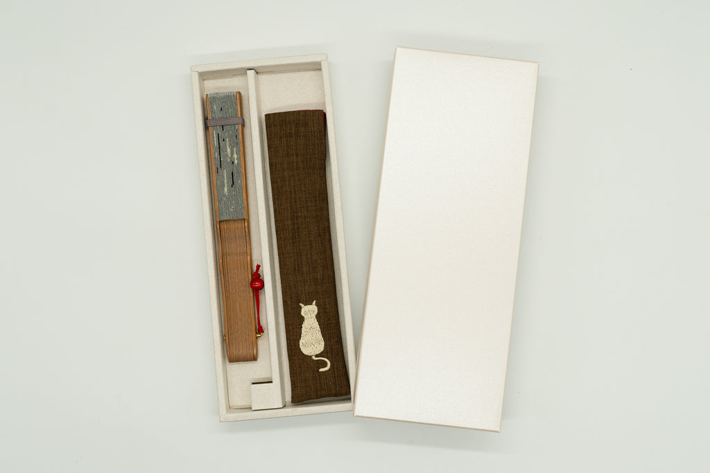 扇子ケースにはネコの後ろ姿を刺繍であしらいました。ネコちゃん好きの方にピッタリのセットです。