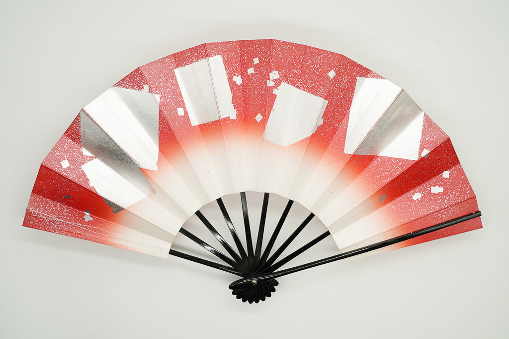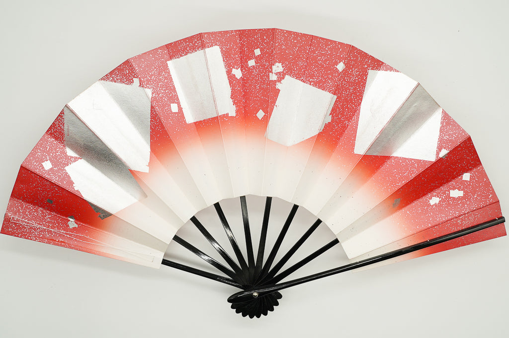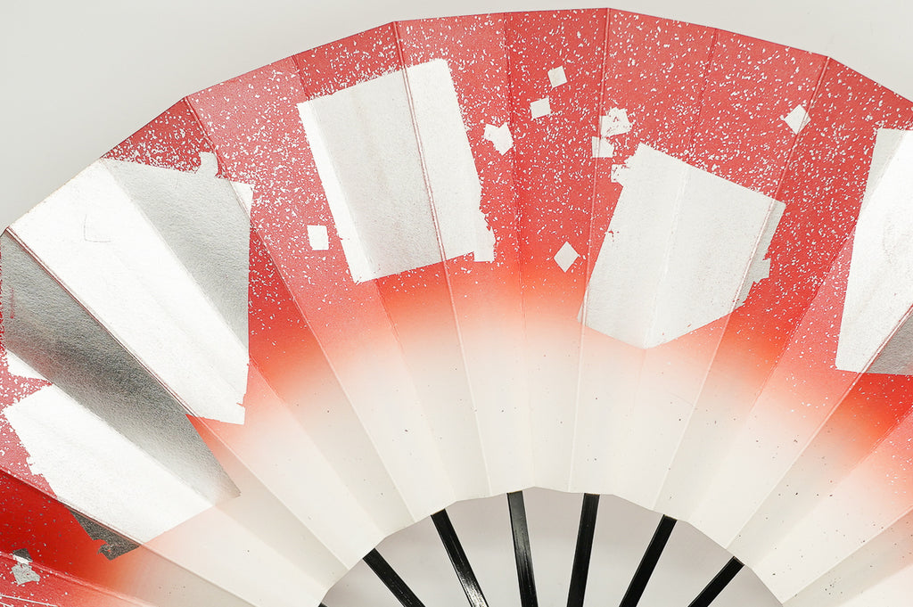 朱色ぼかしに銀の色紙をあしらっています。明るく華やかな雰囲気です。