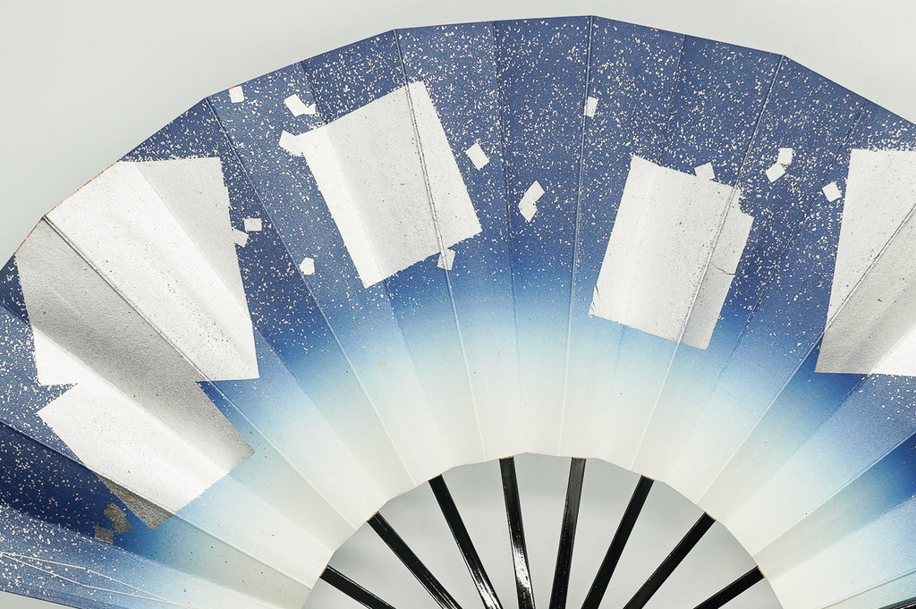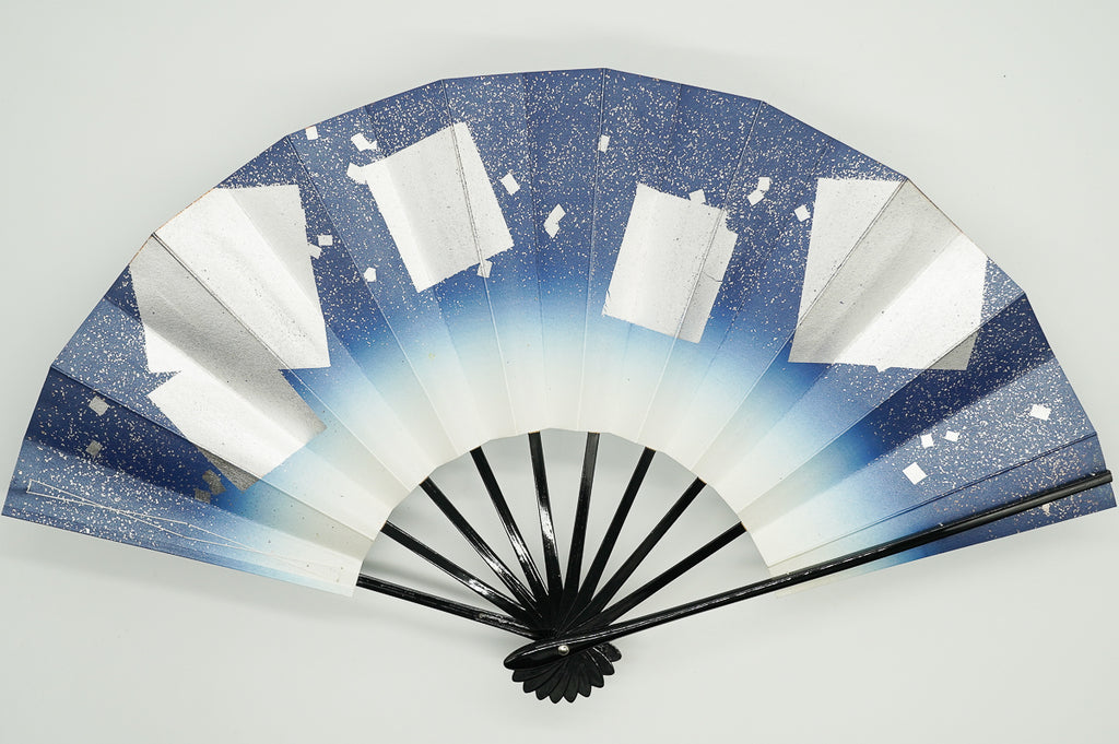 紺ぼかしに銀の色紙をあしらっています。明るく華やかな雰囲気です。