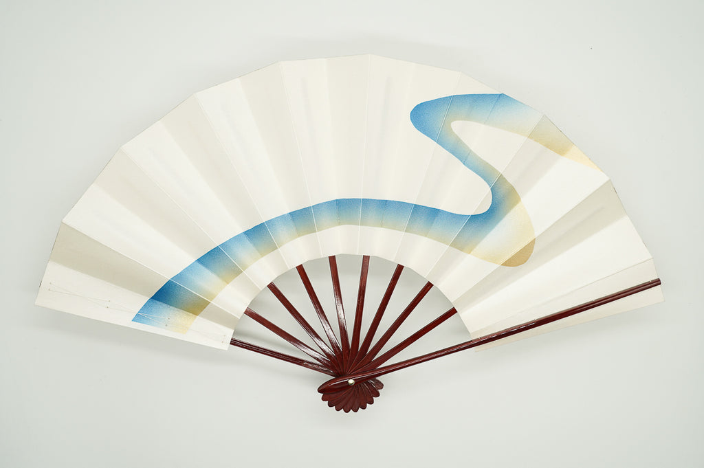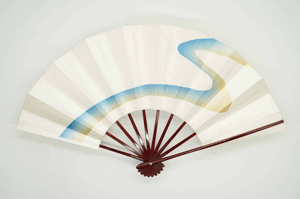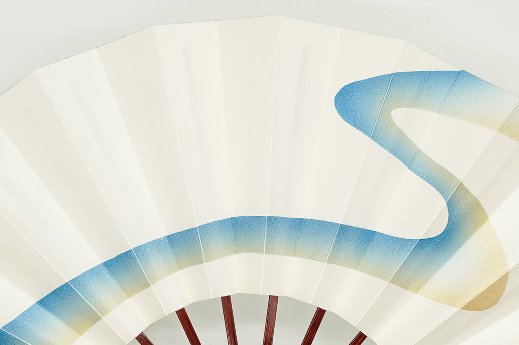 パール地に金と明るいメタリックブルーグラデーションで流水を描いています。